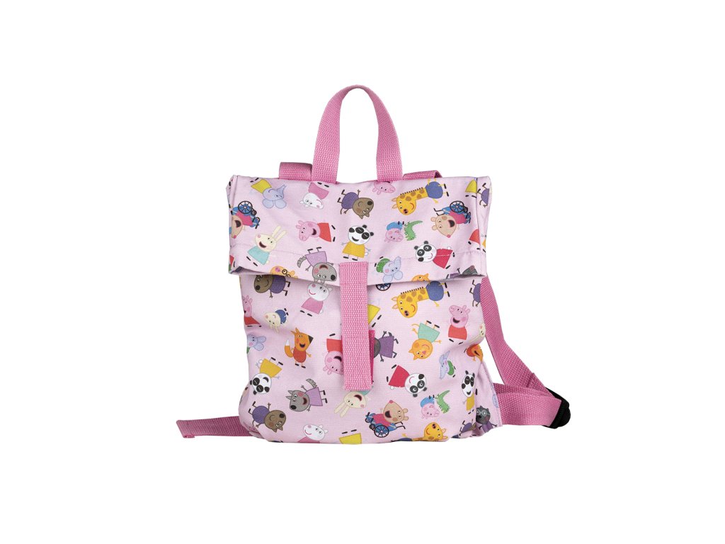Ružový detský batoh typu messenger s motívom milovanej Peppa Pig od francúzskej značky Petit Jour s rozmermi 30 x 28 x 4 cm s objemom 8,4 l je skvelým batohom do škôlky aj na výlety. Má jedno veľké vrecko so zapínaním na suchý zips. Vďaka tomu sa deťom do batohu dobre ukladajú veci. Popruhy sú nastaviteľné, aby batoh padol deťom ako uliaty. Súčasťou je aj menovka.