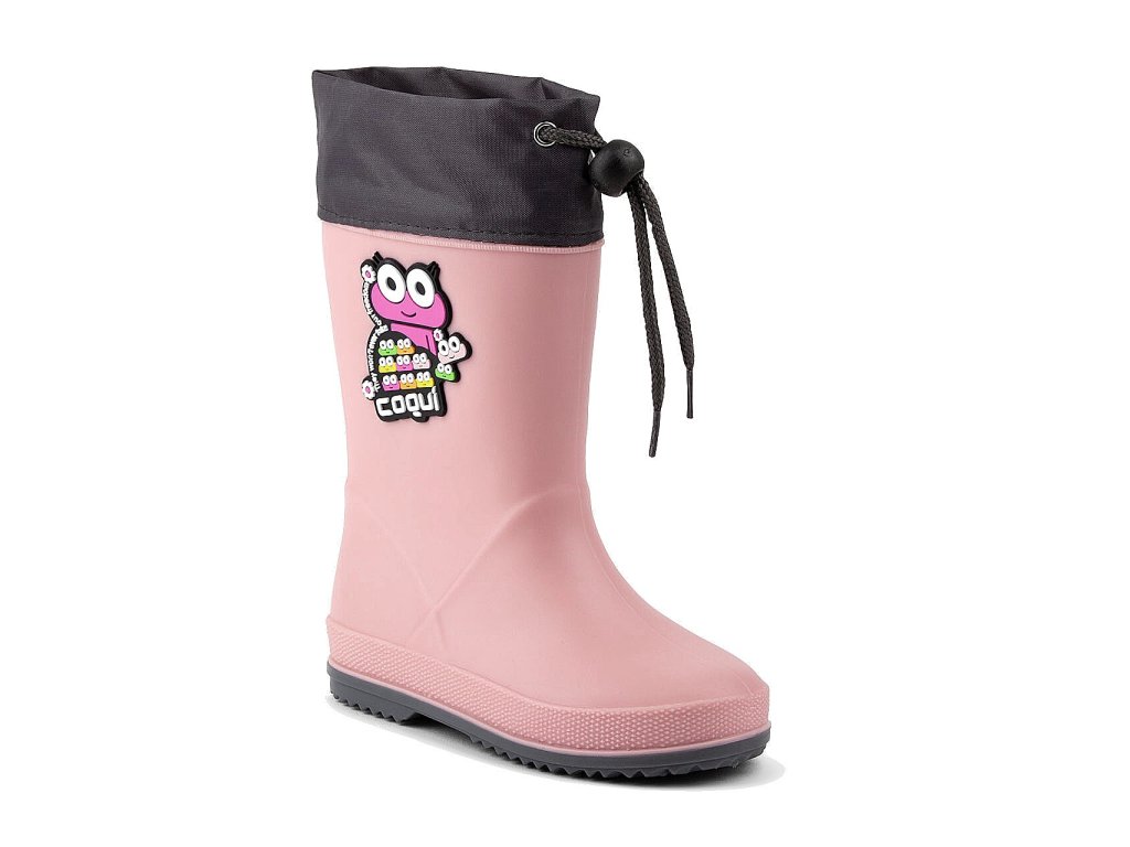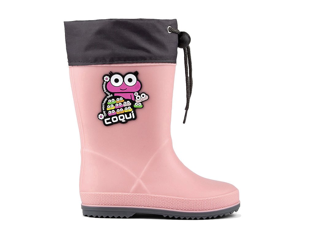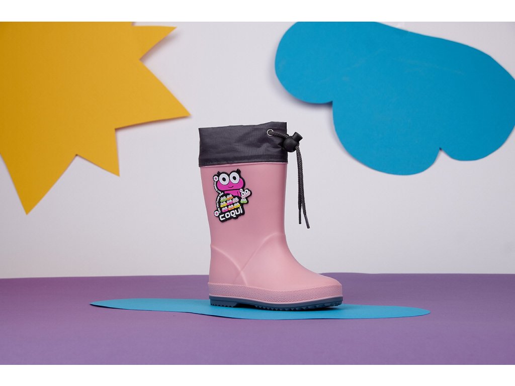 Detské gumáky Coqui Rainy Collar Frog Powder pink/Dk. grey