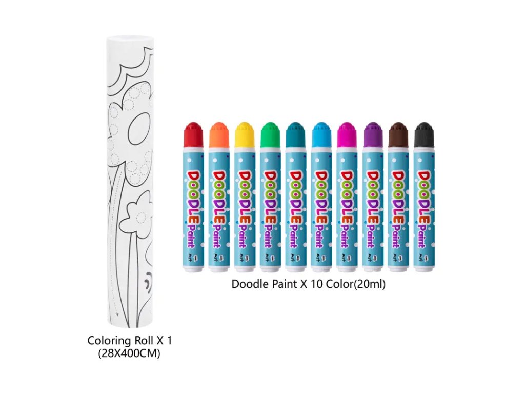 Farby v tube s penovým aplikátorom od Tookyland sú skvelé na bodkovanie, tzv. Dot Painting pre najmenšie deti, ktoré ešte len začínajú s tvorením. Plochým penovým hrotom odtláčajú na papier farebné bodky. Priloží tubu na papier, zatlačí a bodka je na svete. Skúsenejší umelci môžu farbami v tube maľovať aj čiary. Súčasťou balenia je aj Maxi omaľovánka, ktorá ponúka 28 x 400 cm priestoru na vyfarbenie a poskytne hodiny zmysluplnej zábavy.