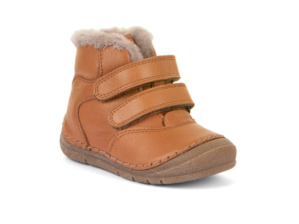 Detské zimné kožené topánky Flexible PAIX UP WINTER Cognac, Froddo G2110143-5 v hnedej farbe.
