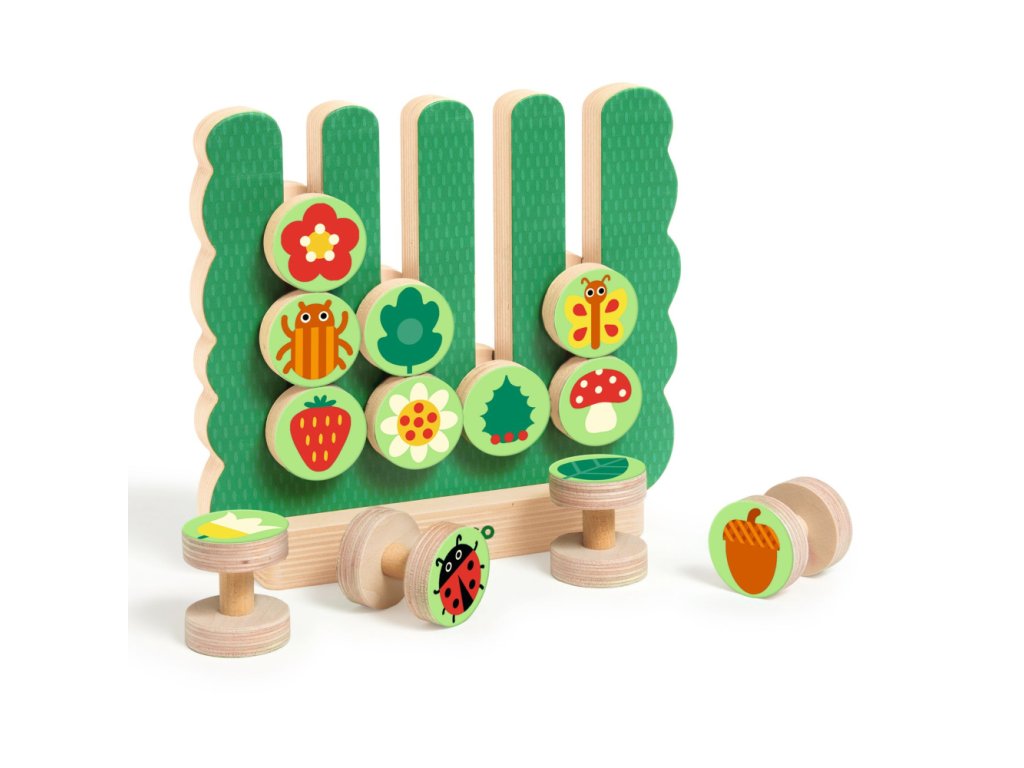 Výhody: - Úvod do reprodukcie sekvencií pre najmenších vo veku od 3 rokov. - Výber správnych tvarov a ich vrstvenie v správnom poradí zlepšuje pozorovacie schopnosti. - 20 modelov na reprodukciu. - Veľké drevené kusy pre ľahkú manipuláciu