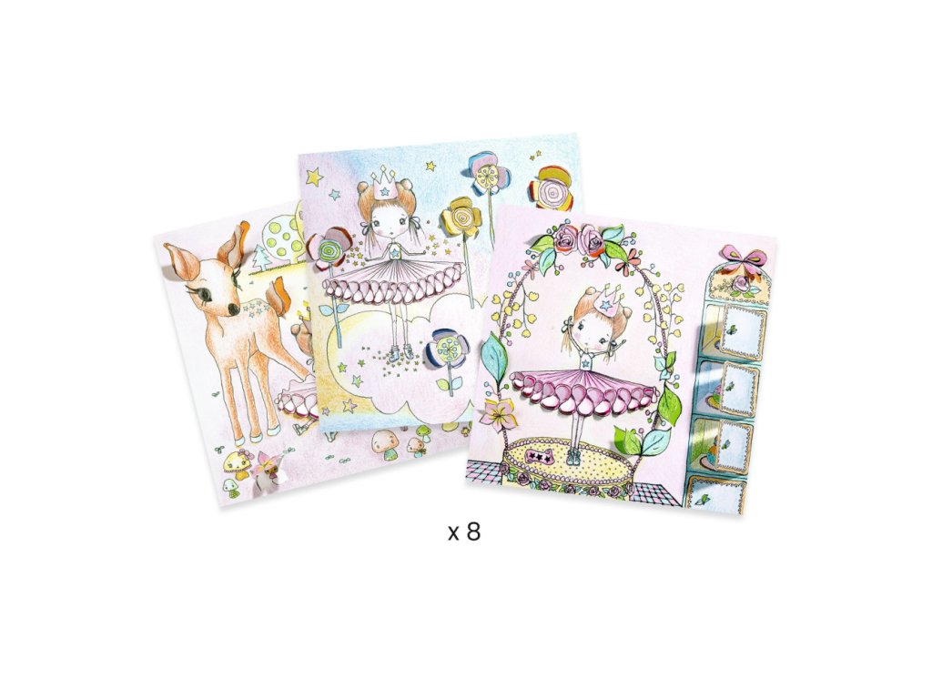 Obsah: 8 dvojitých kariet na vyfarbenie (2 sady po 4 karty) s chlopňami a 3D výrezmi.