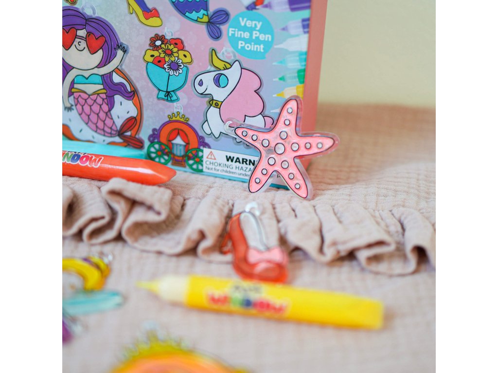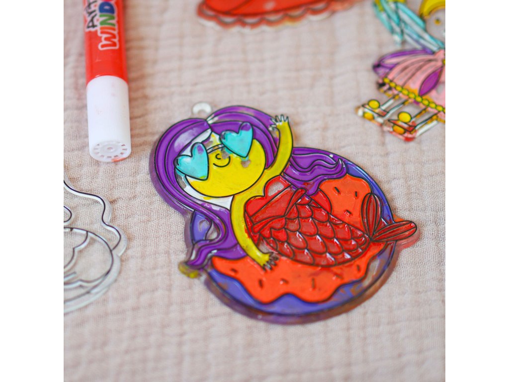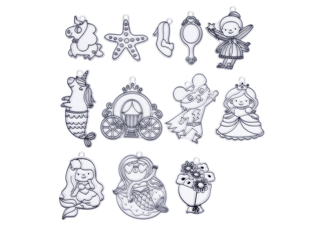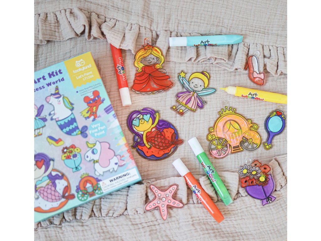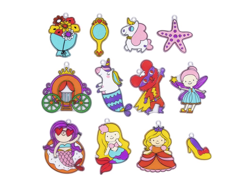 Vďaka tejto sade si spolu s deťmi vytvoríte 12 farebných ozdôb na sklo, ktoré majú rovnaký efekt ako vitráže. Keď zasvieti slniečko, ozdôbky v podobe princeznej, rozprávkových bytostí a ďalších snových obrázkov sa ukážu vo svojej plnej kráse a vytvoria príjemnú atmosféru v interiéri.