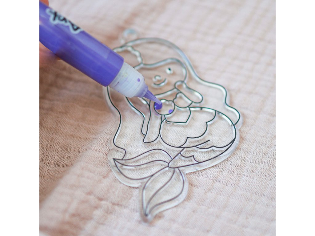 Sada obsahuje 10 jasných farieb v tube, ktoré super tenký hrot, aby sa s nimi dobre maľovalo, a 12 priehľadných ozdôb, ktoré si deti môžu vymaľovať úplne podľa svojej fantázie. Nechýba ani 12 prísaviek, na ktoré sa potom hotové dekorácie zavesia, či už na okno alebo na sklo interiérových dverí. Pri tvorbe si deti precvičia kreativitu, jemnú motoriku aj trpezlivosť. Kreatívna súprava je vhodná pre deti do 6 rokov.