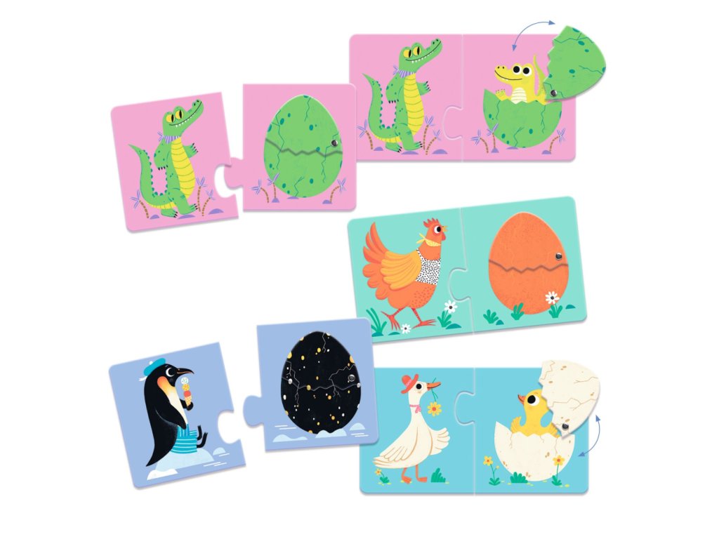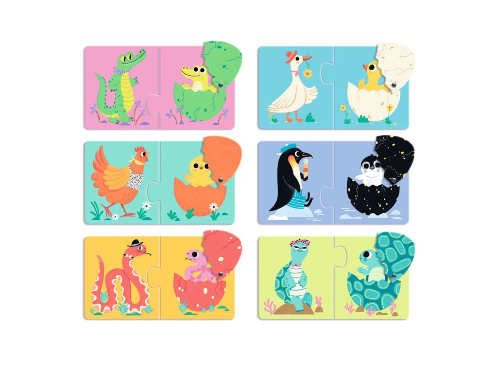 Edukačné puzzle pre batoľatá. Dieťa priradí vajíčko k zvieratku.