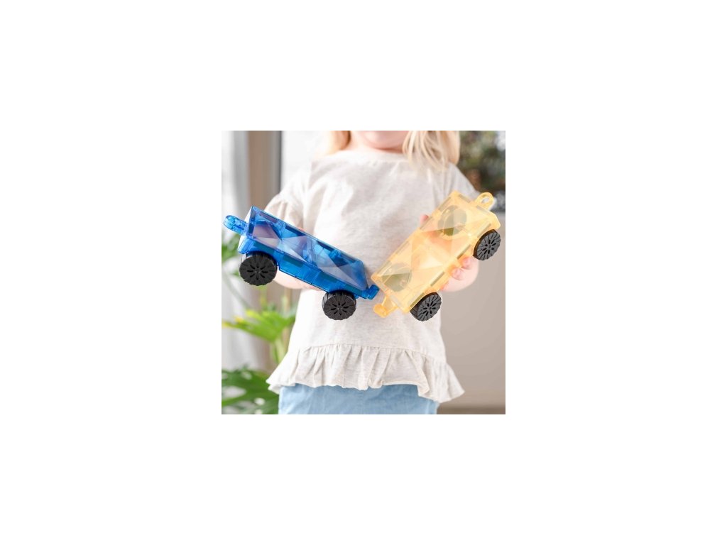 Toto 2-dielne balenie autíčok obsahuje jednu modrú a jednu žltú pohyblivú základňu s kolieskami z pravej gumy a jedinečným skoseným dizajnom. Podporuje nekonečné možnosti pre deti pri navrhovaní a vytváraní vlastných pohyblivých konštrukcií od áut, nákladných áut, vlakov, autobusov, hasičských áut, traktorov a vesmírnych áut až po pohyblivé roboty a zvieratá a mnoho ďalšieho.
