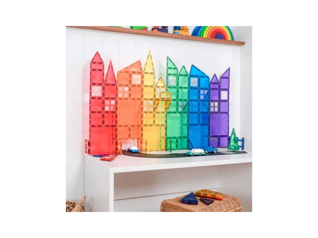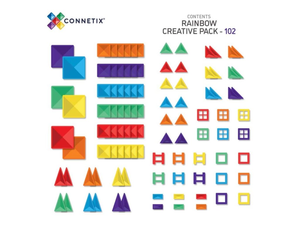 Toto balenie obsahuje rôzne tvary vrátane malých a veľkých štvorcov, rovnostranných, pravouhlých a rovnoramenných trojuholníkov, plus ploty, okná a rámy dverí v každej dúhovej farbe a je ideálne na rodinnú hru a stavanie VEĽKÝCH výtvorov CONNETIX.