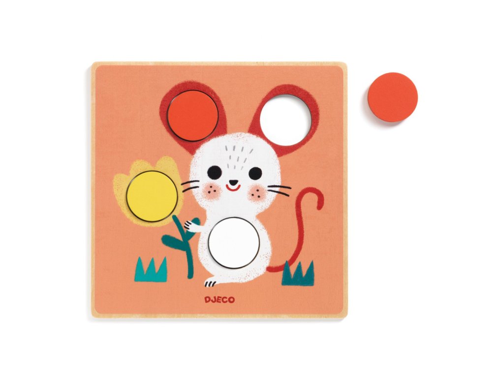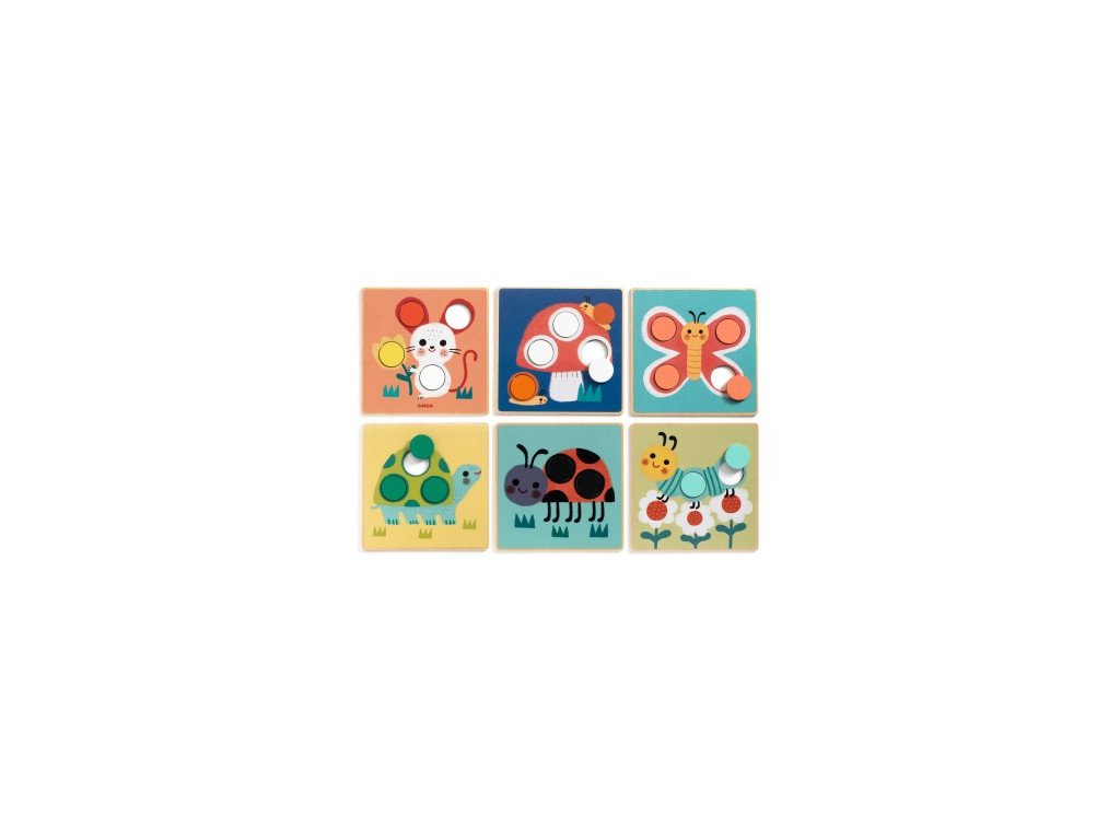 Vyberte si dosku s 2, 3 alebo 4 otvormi. Dieťa bude baviť umiestňovať žetóny zodpovedajúcej farby do správneho otvoru, aby sa obraz doplnil. Výhody: - Robustné žetóny, ktoré sa dajú ľahko uchopiť. - Ľahké získanie informácií o farbách.